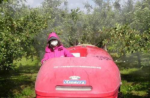 Để đảm bảo khỏi sâu bệnh, táo cần được phun thuốc. Theo tiêu chuẩn an toàn của Aomori, người trồng táo được phép phun thuốc 10 lần/năm (trong đó có khoảng 7 lần phun nhẹ khi táo ra quả). Hóa chất trong nông nghiệp được sử dụng một cách an toàn, chính xác và không làm ảnh hưởng môi trường xung quanh.