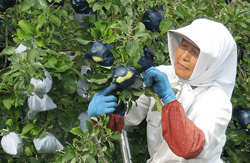 Đối với các giống táo kết trái hơi muộn, nông dân Nhật sẽ bắt đầu bỏ túi từ giữa đến cuối tháng 9 và để táo phát triển tự nhiên dưới ánh sáng mặt trời.